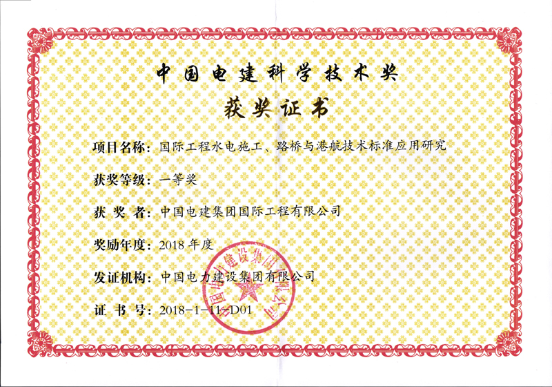 国际工程水电施工、路桥与港行技术标准应用研究一等奖