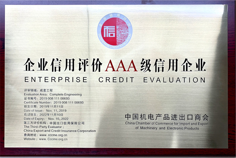机电商会AAA级信用企业