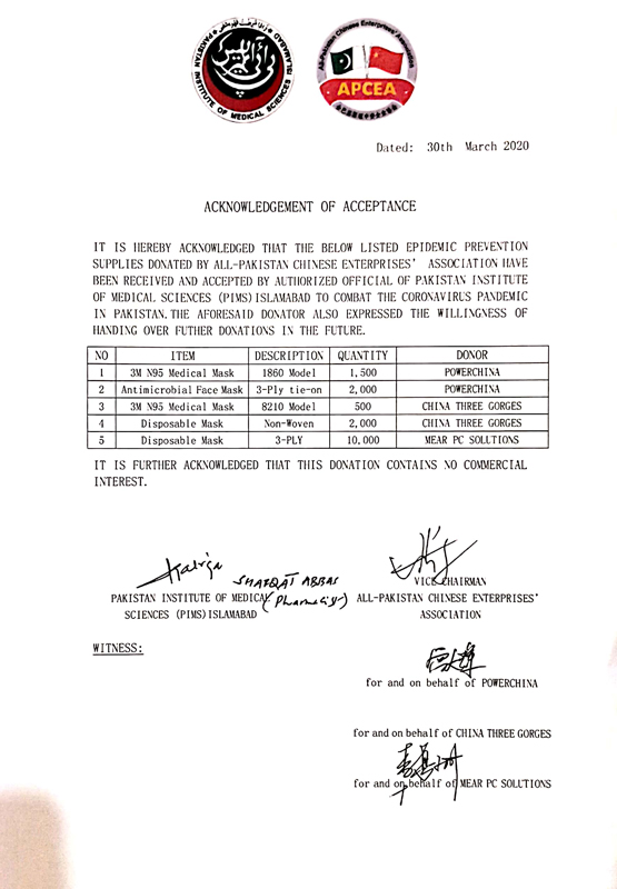 3月30日,在新冠肺炎疫情在巴基斯坦确诊病例持续上升,疫情扩散形势愈发严峻的背景下,918博天堂联合5家在巴中资企业,向巴基斯坦医学科学研究院(PIMS医院)和国家灾难管理局紧急捐助一批防疫物资及抗疫资金416万卢比。中国驻巴基斯坦大使馆公使衔参赞王志华出席捐赠活动,中国国际广播电台乌尔都语频道FM98、Pakistan Today等媒体对活动进行采访和报道。