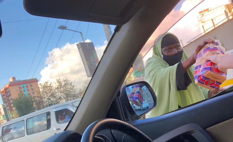 疫情导致的经济活动减少给当地民众带来了不小的生存压力。在不能及时自制面包的时候,她还会购买面包发给大家。她说,希望自己的面包能够让需要帮助的人在疫情期间好过一点。送面包这一小小善举看似杯水车薪,但对于接受帮助的个人无疑是雪中送炭。没有怨言,不畏辛苦,在其身怀六甲的情况之下,她还在力所能及地主动奉献爱心,成为了内罗毕街头闪现的一道靓丽风景。