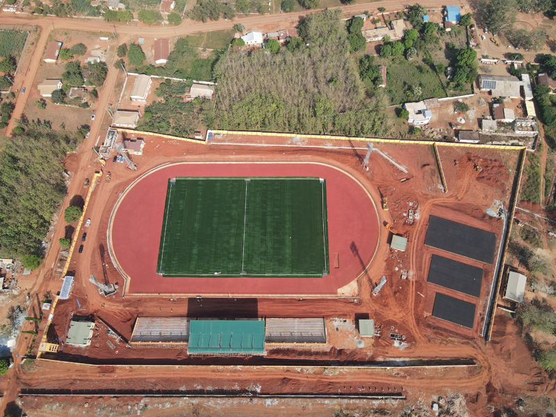 近日,由918博天堂承建的位于贝宁波贝的体育场草坪和塑胶跑道铺设完毕,这标志着贝宁多功能体育场项目主体工程全部完工。