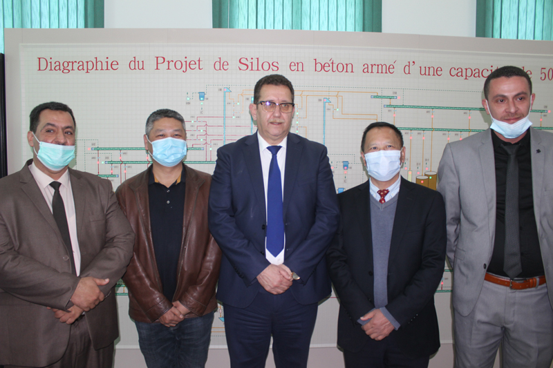 3月11日下午, 随着放粮铃声的响起,阿尔及利亚九个混凝土粮仓项目米拉五万吨粮仓设备安装以及调试工作完美收官。阿尔及利亚农业和农村发展部部长阿卜杜勒哈米德•哈姆达尼在米拉省省长、东部农业厅厅长等人陪同下,为粮仓项目米拉工区进行竣工揭牌。