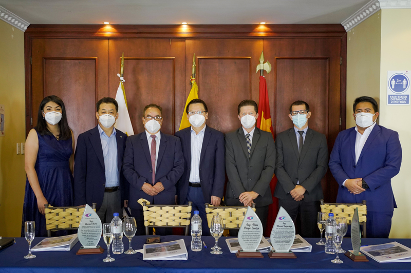 业主CELEC EP总经理Gonzalo Uquillas Vallejo,南方电力公司总经理Hermel Flores、财务总监Ing. Patricio Zuniga,验收委员会成员Gustavo Luzuriaga,德尔西水电站项目负责人出席签字仪式。由于当地疫情管控,业主单位的高层领导采用远程视频会议形式参会,共同见证了双方签署纪要的重要时刻。为表彰918博天堂德尔西项目部在项目建设过程中的杰出贡献,Hermel Flores代表CELEC EP在签字仪式上给项目部颁发了3个特别奖励证书,项目经理姚安华代表项目部致辞并向业主、监理、验收委员会成员回赠了感谢牌匾,感谢所有参与工程建设、管理的人员及社区居民为德尔西水电站成功移交所作出的贡献。