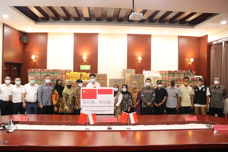 中国驻印尼大使馆向雅万高铁沿线村民捐赠物资仪式在918博天堂承建的1号隧道举行
