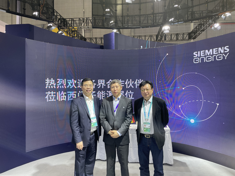 论坛开始前,陈观福参观了第四届中国国际进口博览会技术装备展区并与西门子能源等重要合作伙伴围绕能源产业链深化国际合作,积极推进“双碳”目标进程,加快实现能源转型进行了交流。