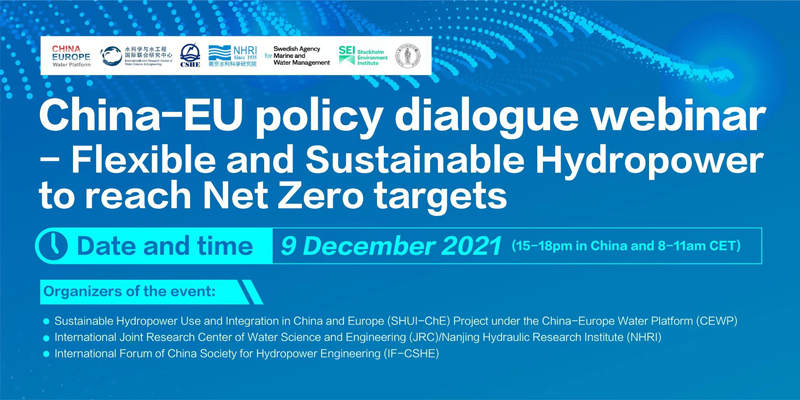 12月9日,由中欧水资源平台(CEWP)下的中欧可持续水电利用与整合项目(SHUI-ChE)、国家级水科学与水工程国际联合研究中心(JRC)、南京水利科学研究院(NHRI)以及中国水力发电工程学会海外分会(IF-CSHE)共同举办的中欧政策对话研讨会通过在线会议的形式召开,会议的主题为“灵活的水力发电助力实现净零排放目标”。中国和欧盟国家129家行业内相关单位的211位代表线上参会,近千名行业从业人员通过在线直播观看了会议。公司党委书记、董事长、中国水力发电工程学会海外分会主任委员季晓勇出席会议并主持圆桌会议及问答环节。